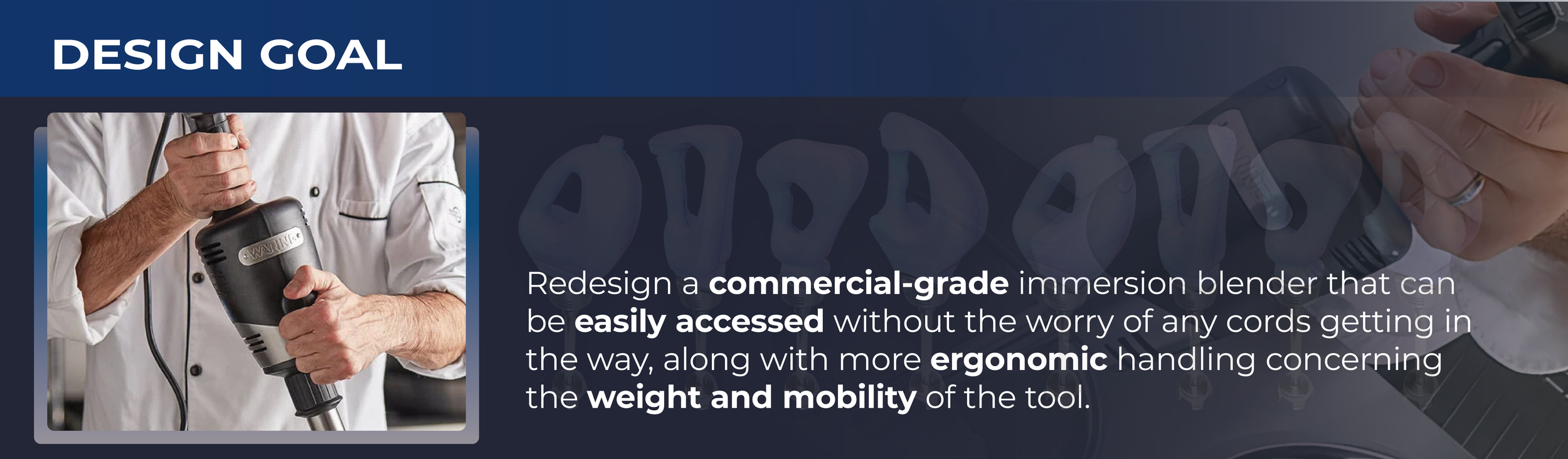 A rework of the Waring WSB Immersion blender that allows for swift, lightweight, and manageable kitchen skills